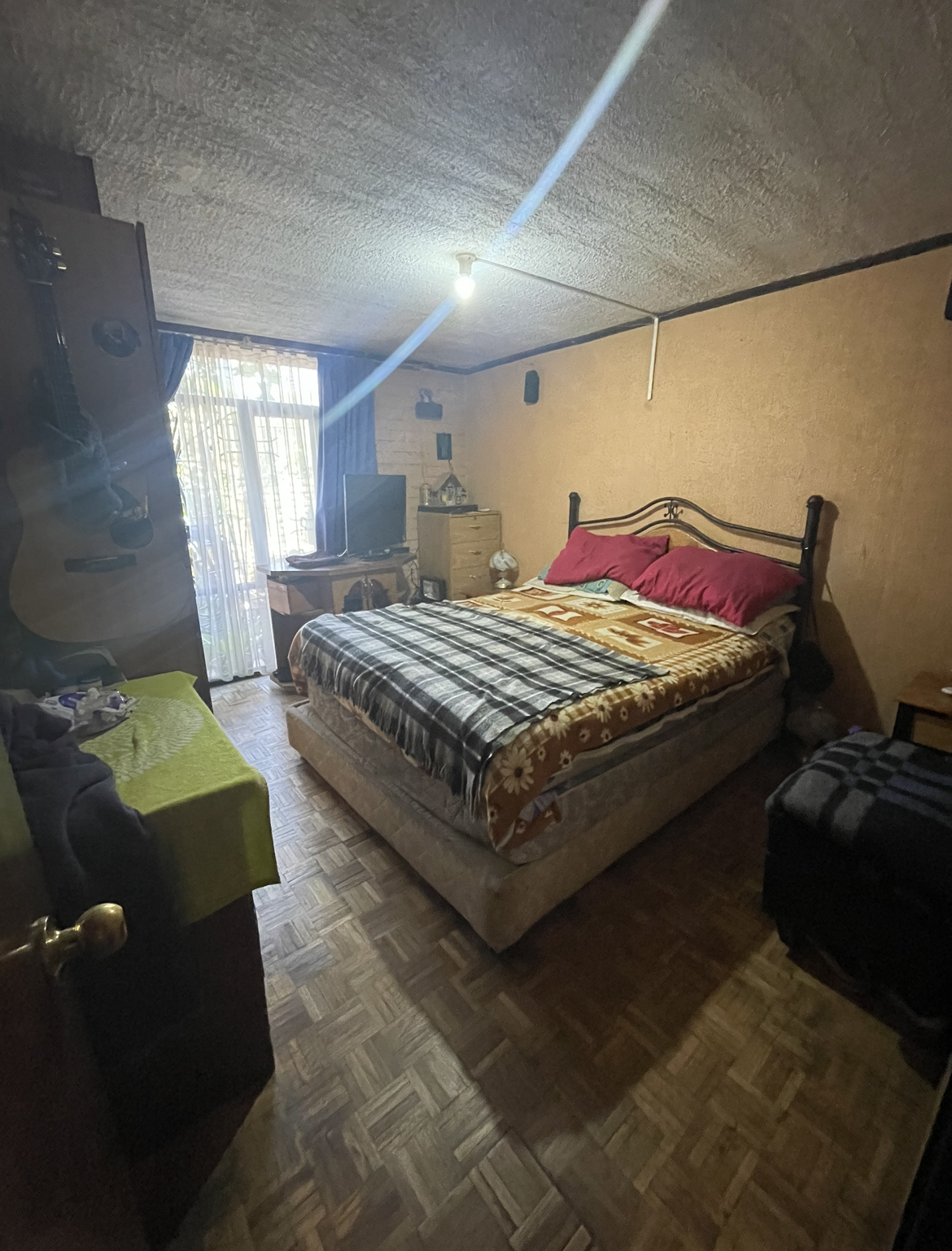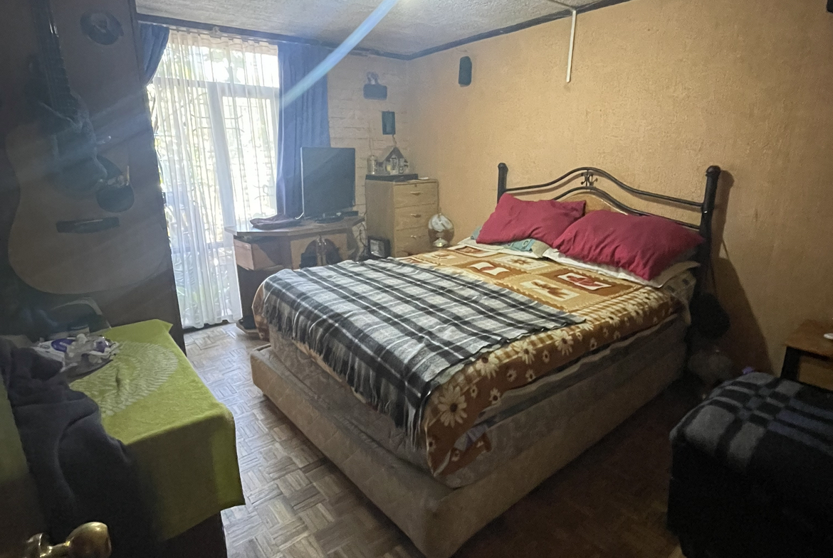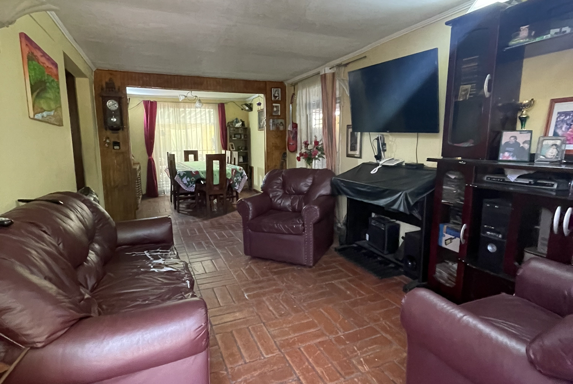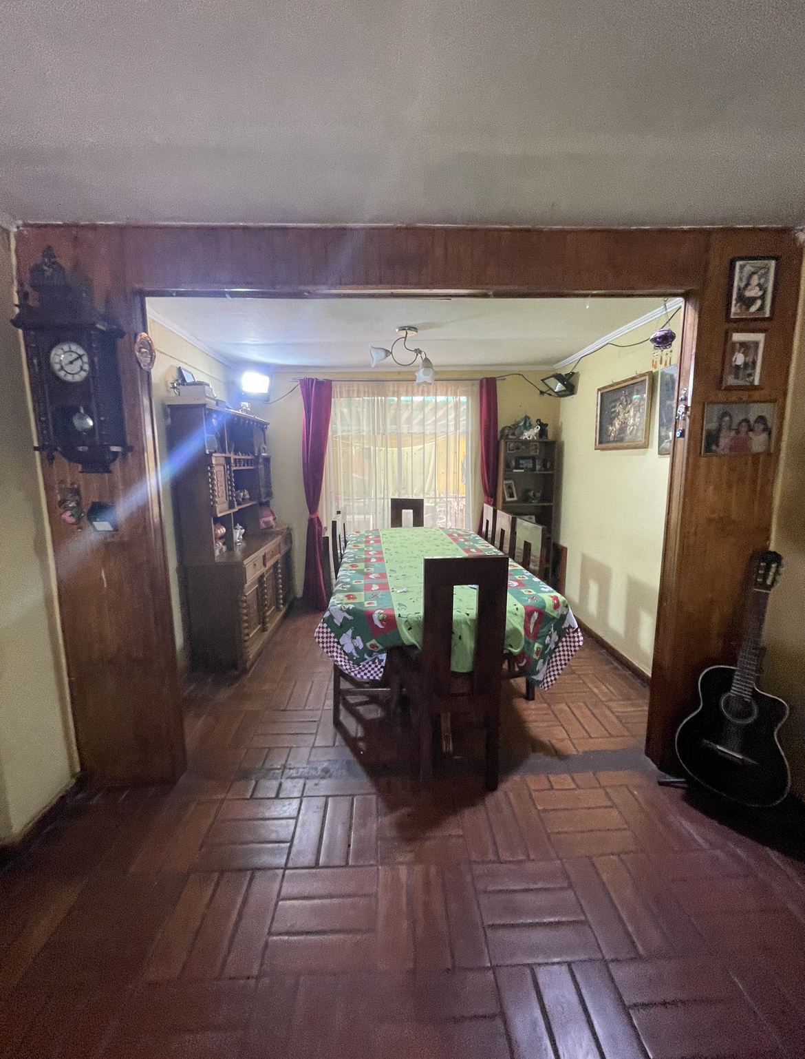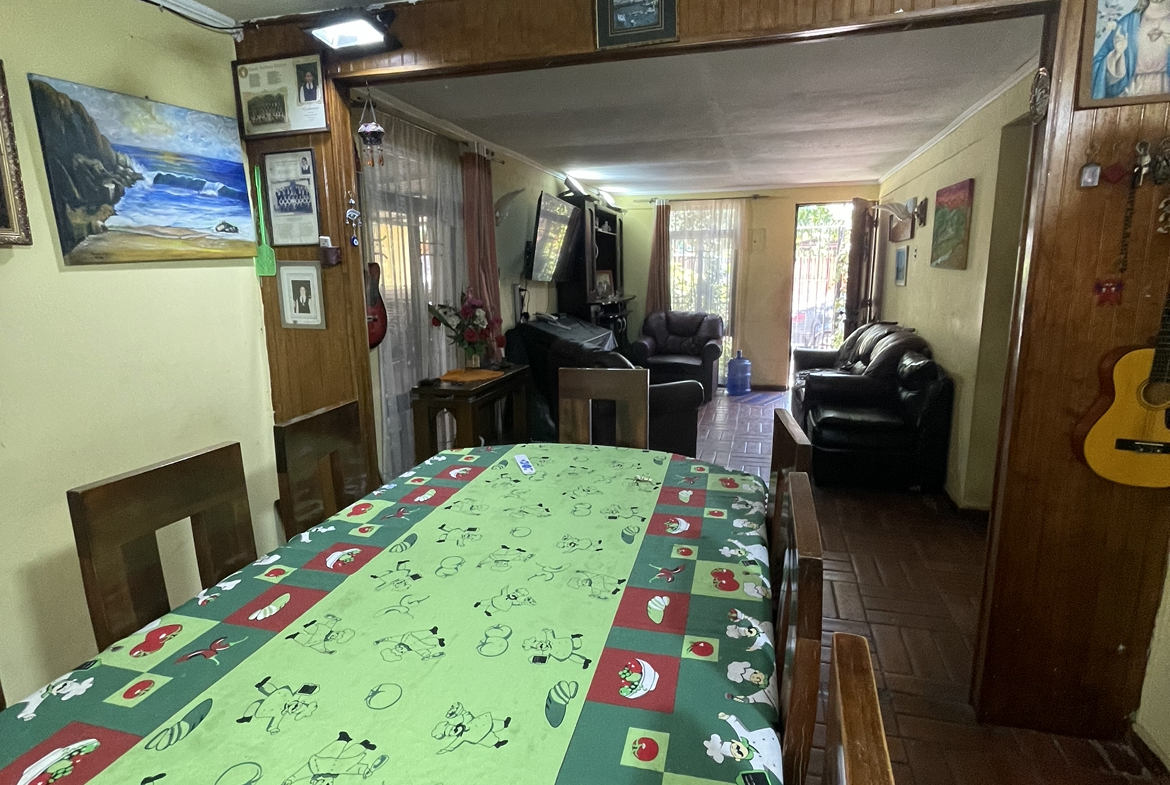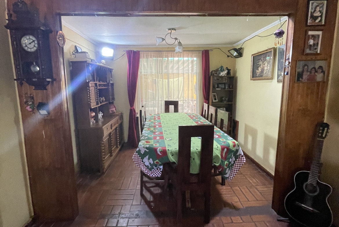 En primer piso se encuentra amplio living comedor, baño, dormitorio matrimonial y cocina espaciosa con conexión a lavadora y calefont. Antejardín, estacionamiento para dos vehículos y patio trasero.