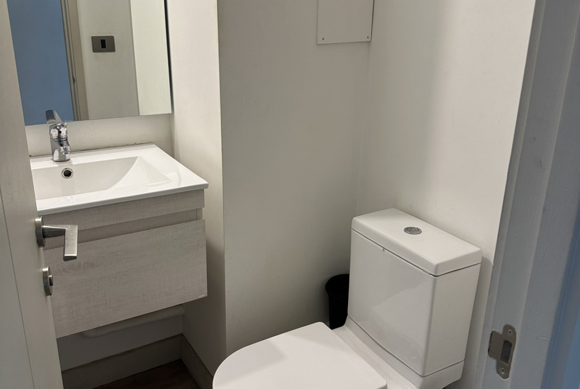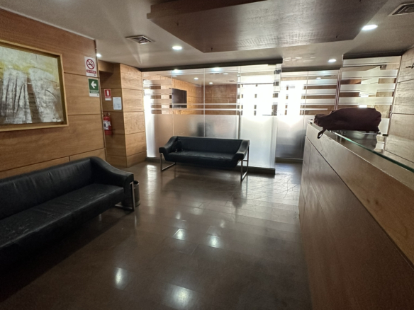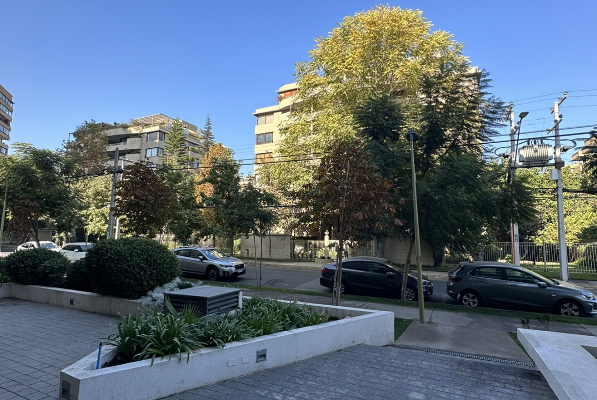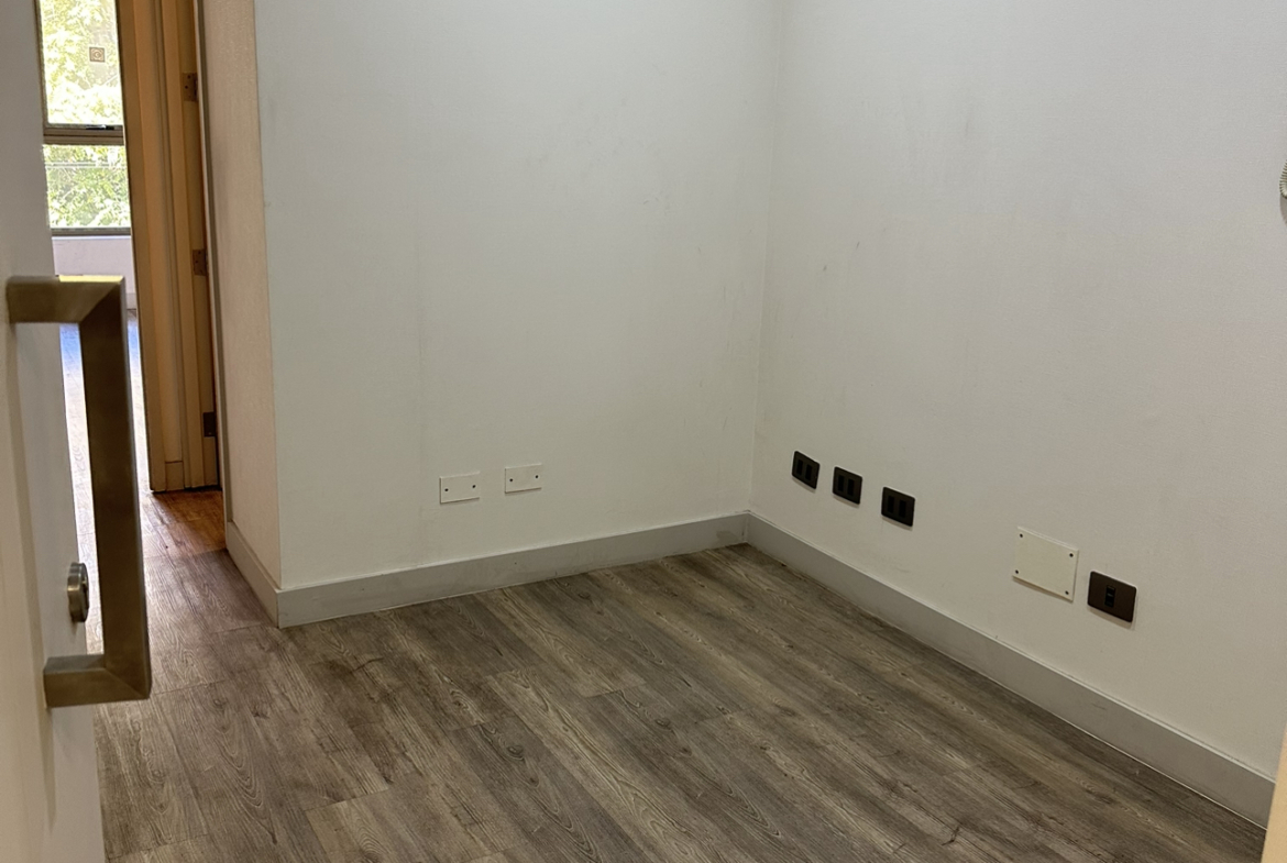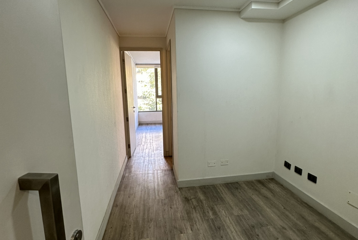 Oficina ubicada en Rosario sur con Manquehue, Las condes. A 10 minutos de metro Manquehue (L1). Cuenta con un privado más recepción, un baño, aire acondicionado. 4° piso. Estacionamientos para todo publico afuera del edificio, tiendas de conveniencia en mismo edificio, centros médicos, Apumanque a minutos.